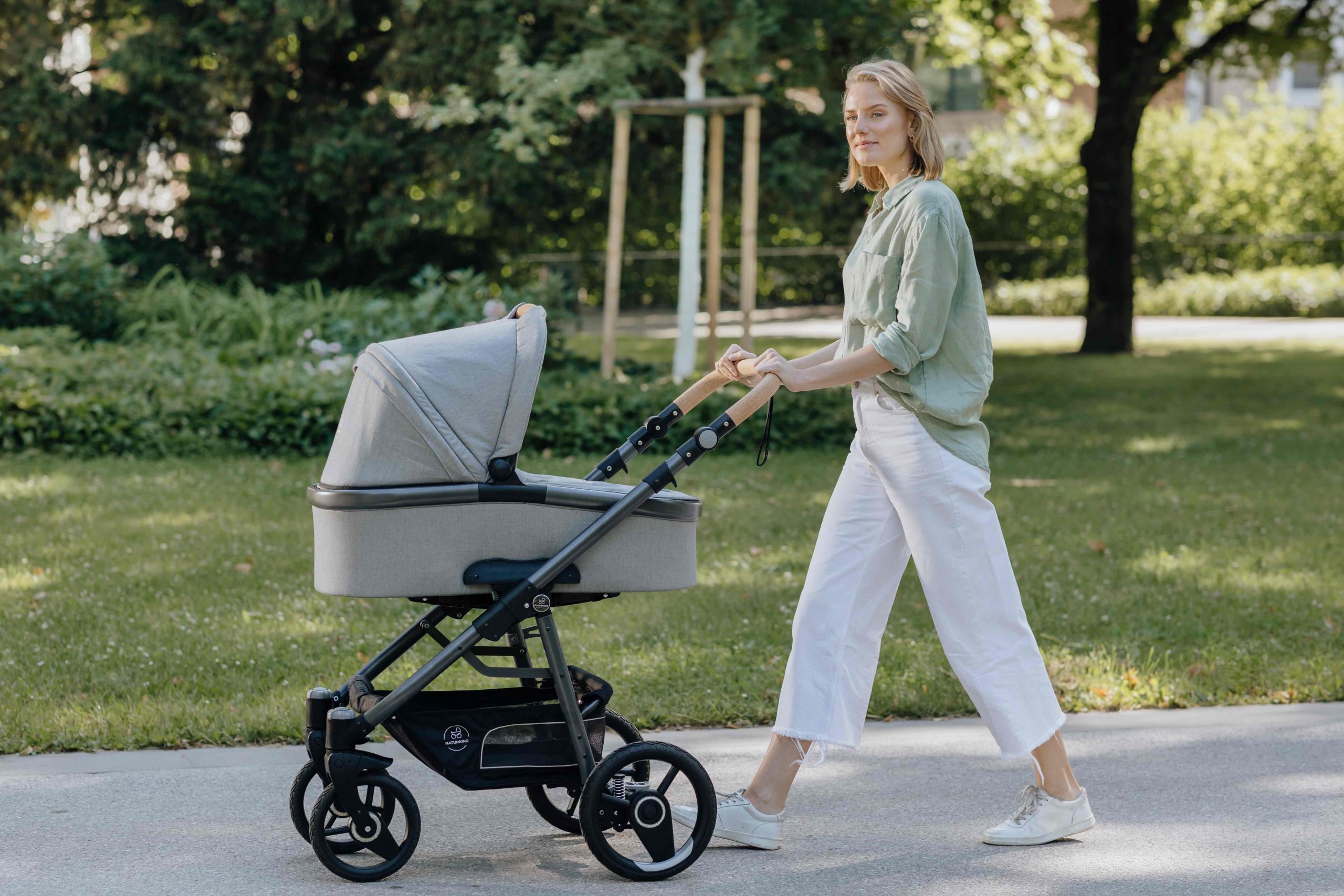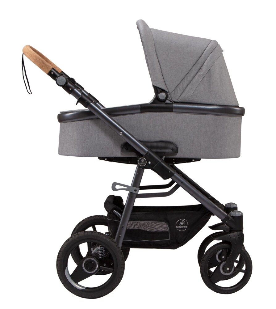 In einem Naturkind Kinderwagen kommt euer Baby mit keinerlei Pestiziden, giftigen Farbstoffen oder allergieauslösenden Chemikalien in Kontakt. Naturkind verwendet Bio-Baumwolle für alle Bezugsstoffe. Diese werden in Österreich gewebt und gefärbt. Als Füllmaterial wird Bio-Schafschurwolle aus Österreich eingesetzt – oder auf Wunsch auch Bio-Baumwolle für einen veganen Kinderwagen. An den Griffen und in der Sitzschale wird Kork aus Portugal verarbeitet, der in Österreich aufbereitet wird. Kork bietet einen ergonomischen Sitzkomfort und ist ein sehr angenehmes, wärmespeicherndes Material. Außerdem findet sich in den Naturkind Kinderwagen Pappelholz sowie Kokosfasern und Naturkautschuk in den Matratzen. Hört sich erstmal ziemlich gut an, oder?